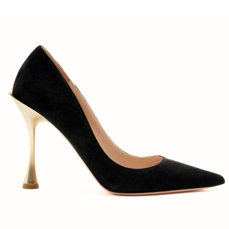 Pump silhouette, suede body, pointed toe